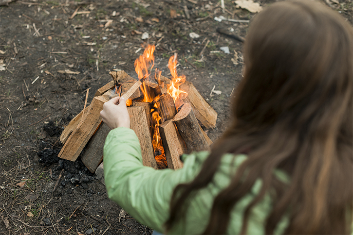 Bonfire location: Choose a clear area free of dry weeds and brush away from buildings. Avoid stacking wood too high.