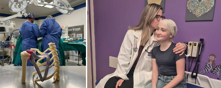"The goal of the surgery, beyond saving her life, of course, was to preserve arm function as much as possible and ensure a good cosmetic outcome, which is especially important for a girl her age. This complex surgery was possible thanks to the recently established in-house 3D development center at Schneider Children's. A 3D model was created based on her anatomy as part of the surgical planning. This included scanning the healthy shoulder blade to generate a mirrored version that matched the exact size and weight of the bone to be removed.