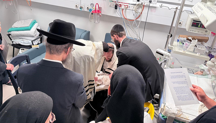 His parents, who had been waiting eagerly for the opportunity to hold a Brit Milah, asked the medical team for help arranging the ceremony inside the department. The staff responded immediately, coordinated all necessary logistics, and made preparations for what became an especially moving event for the family, patients, and care team alike.